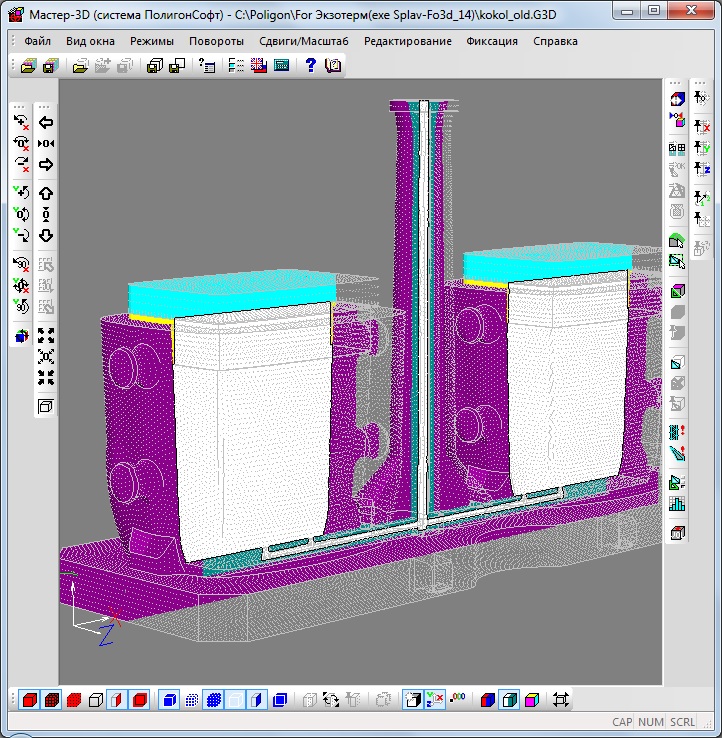 Для примера рассмотрим несколько вариантов реальной литейной технологии. На рис.1 показана расчетная конечно-элементная геометрическая модель (ГМ) стального слитка, заливаемого в реальном производстве в кокиль с применением экзотермических плит.
