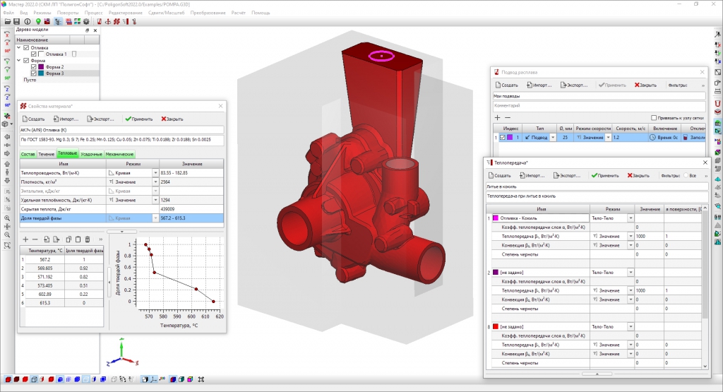Пользователи получат обновленный препроцессор Мастер с новыми редакторами и инструментами. Постоянно совершенствуемая архитектура СКМ ЛП «ПолигонСофт» продолжает вытеснять старый код, и потерявшие актуальность модули заменяются на новые. В частности, в этой версии заменены устаревшие редакторы тепловых, усадочных и механических свойств материала. Теперь все характеристики литейного сплава объединены в одном файле и доступны в новом редакторе Свойства материала, существенно расширяющем возможности и функционал для управления, включая систему проверок корректности и достаточности данных.