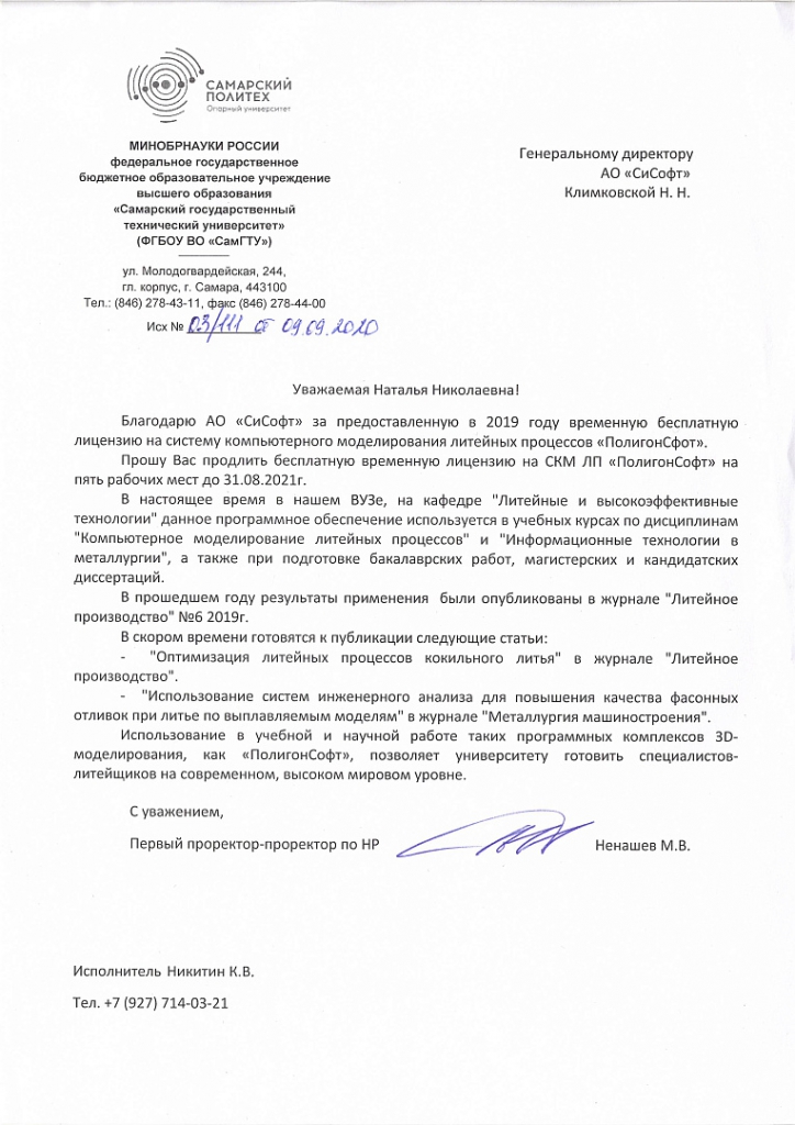 «Использование в учебных и научных работах таких программных комплексов 3D-моделирования, как «ПолигонСофт», позволяет университету готовить специалистов-литейщиков на современном, высоком мировом уровне», — подчеркнул первый проректор — проректор по НР ФГБОУ ВО «СамГТУ» Максим Владимирович Ненашев.